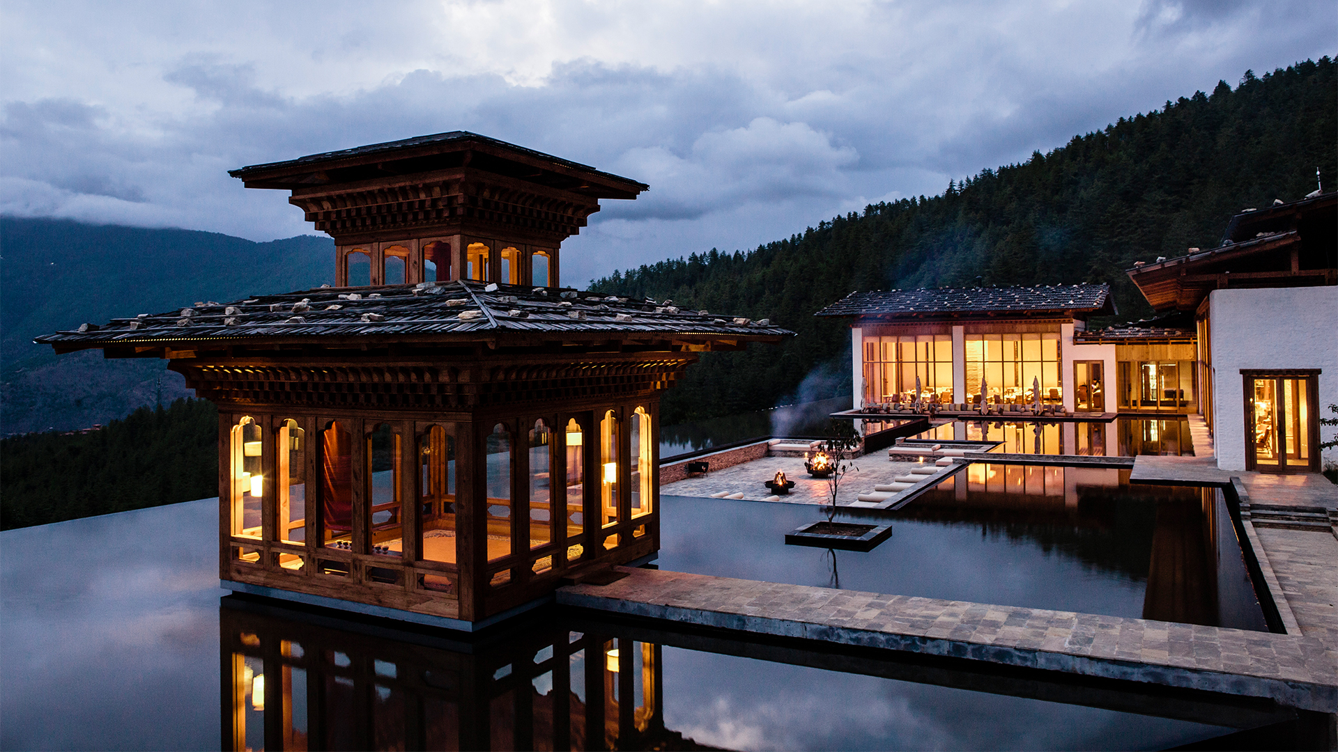 En route, pass grazing yaks on slopes carpeted with wild flowers, terraced paddy fields and ornately painted farmhouses in remote villages ever alive with colourful celebrations, dancing and music. These are the vistas afforded by Bhutan’s ravishing selection of mountain lodges and retreats, where the traveller has the opportunity to unwind in the hands of therapists trained in Bhutanese treatments such as hot stone baths – perfect after a brisk walk to a local village to see a way of life virtually unchanged for centuries. Looking down on the world from such a height instils a deep sensation of tranquillity and inner calm.