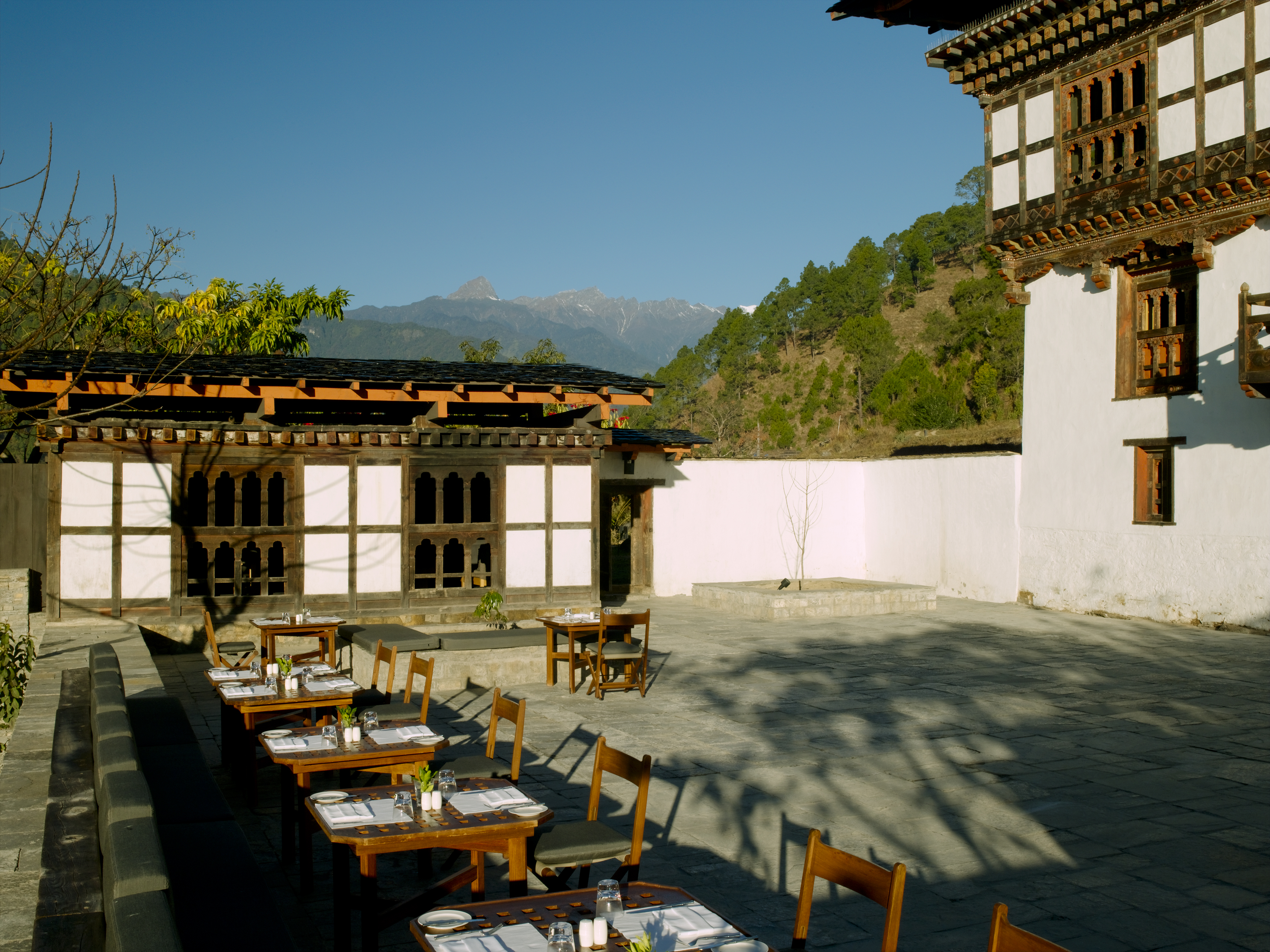 En route, pass grazing yaks on slopes carpeted with wild flowers, terraced paddy fields and ornately painted farmhouses in remote villages ever alive with colourful celebrations, dancing and music. These are the vistas afforded by Bhutan’s ravishing selection of mountain lodges and retreats, where the traveller has the opportunity to unwind in the hands of therapists trained in Bhutanese treatments such as hot stone baths – perfect after a brisk walk to a local village to see a way of life virtually unchanged for centuries. Looking down on the world from such a height instils a deep sensation of tranquillity and inner calm.