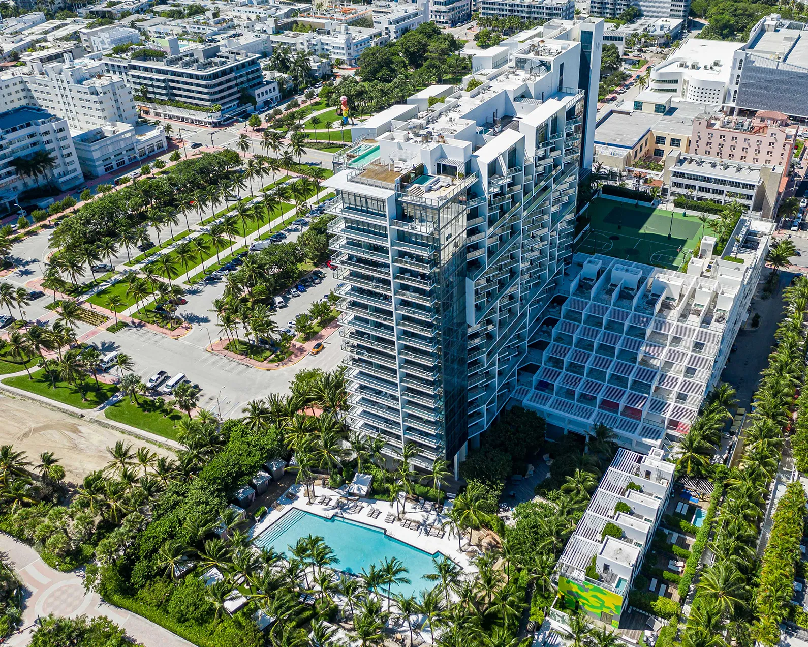 This restored Art Moderne building in Miami’s famed Art Deco district exudes an air of modern sophistication from its eleven gleaming storeys.