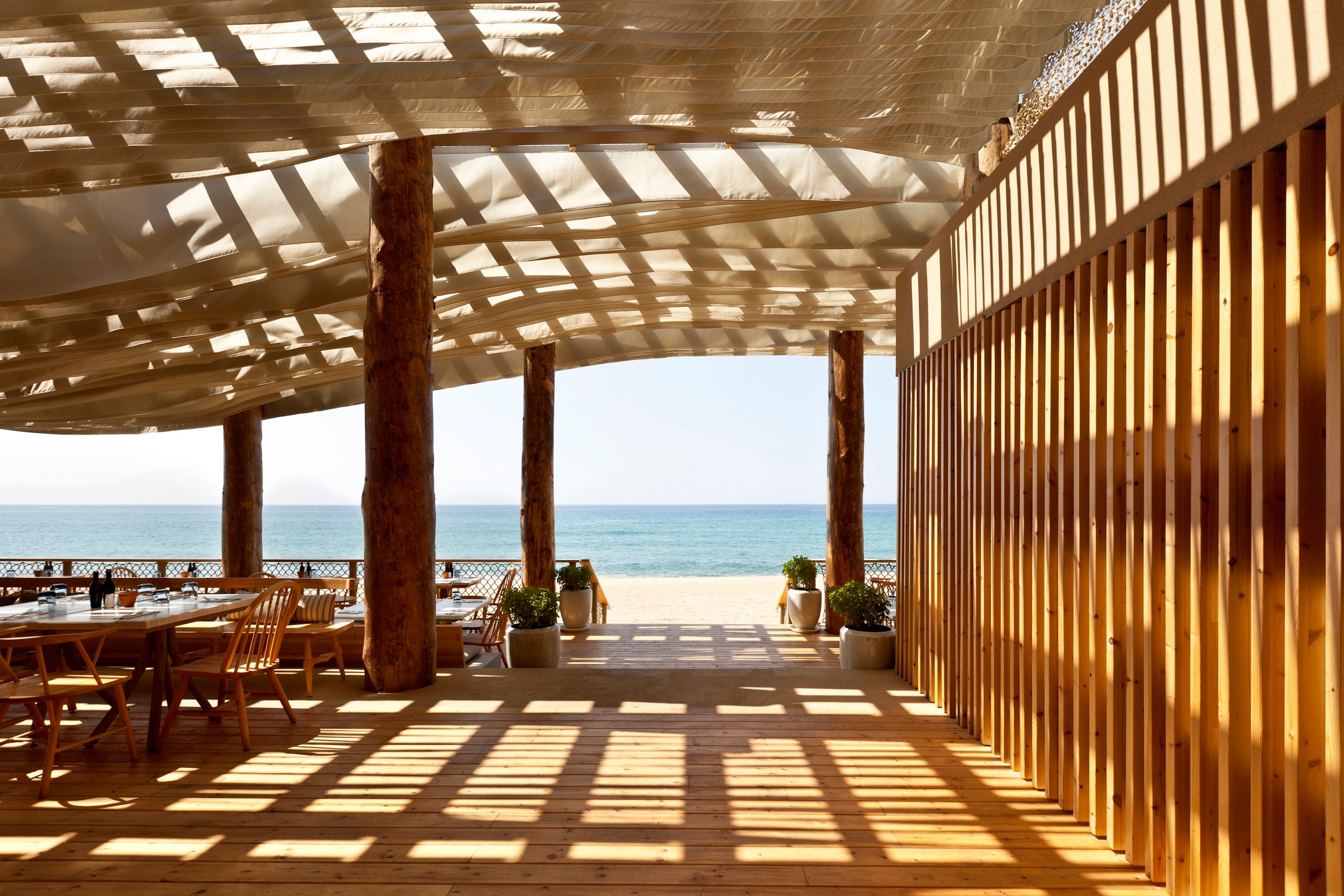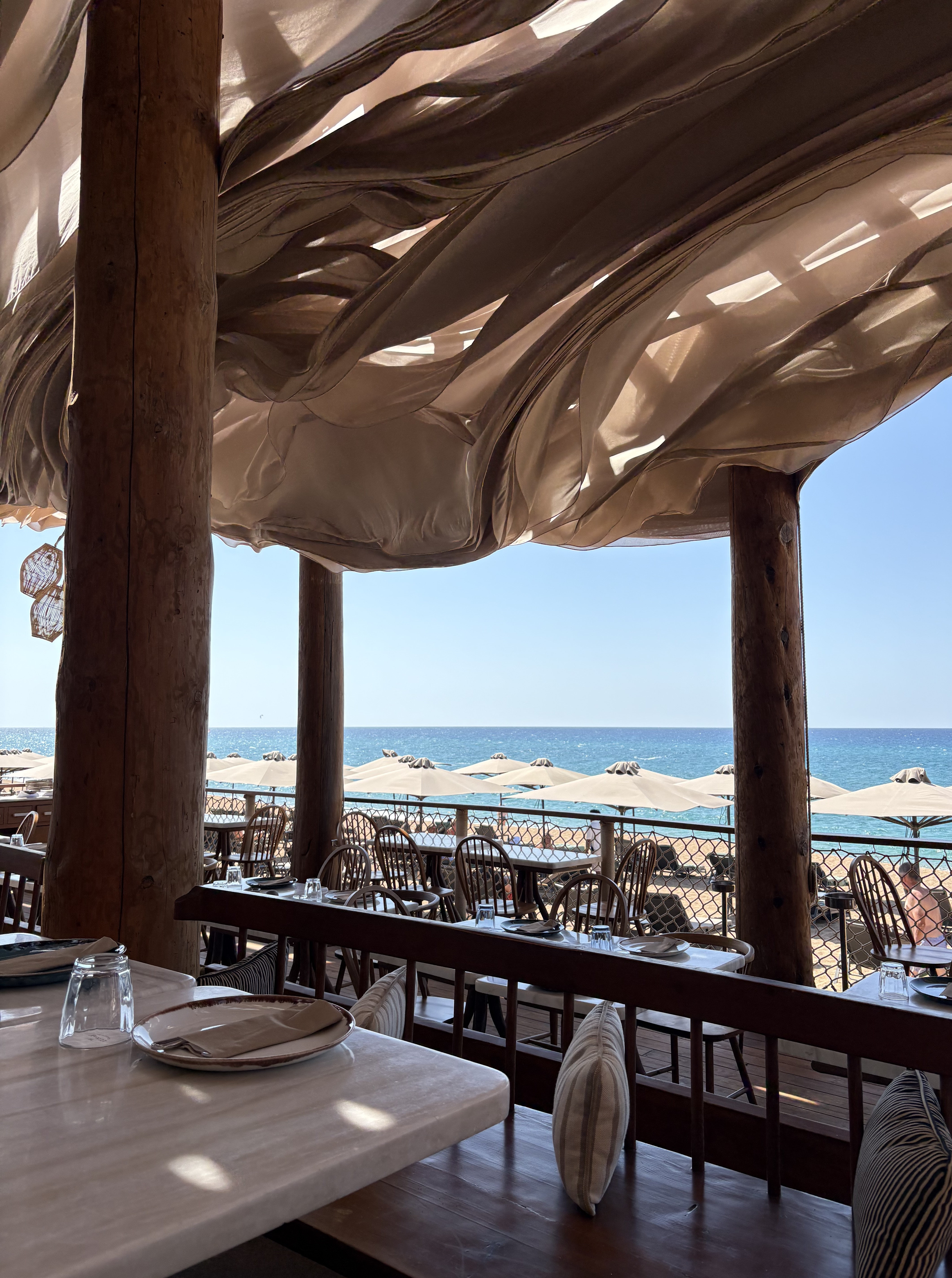 Perched on a platform of natural wooden plinths, with incredible views of the crystal-clear Ionian Sea, lies the Instagram-able, bucket-list-worthy Barbouni beach restaurant. Superb seafood, the catch of the day, and local signature delicacies are served up amid true pinch-me-moments and effortless luxury, as rippling fabric ribbons and native rattan lampshades dance in the wind overhead, echoing the captivating waves of the sea.