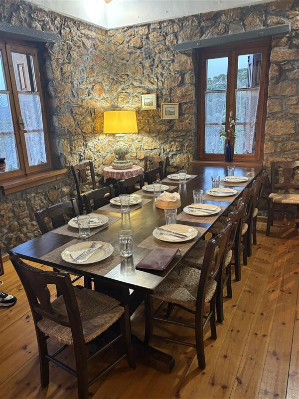 Aprons are donned, and it’s time to prepare cherished inherited recipes – spinach pie, salads and fresh pasta – all under the watchful eye of the two gracious hosts, Anna & Loula, who seem able to craft the recipes in their sleep. After the final sprinkle of Greek charm, guests gather to enjoy the fruits of their labour, complemented by dishes prepared earlier and a generous pouring of local wine. The evening concludes with a spot of Greek dancing, keeping the spirit (and digestion) joyfully flowing.