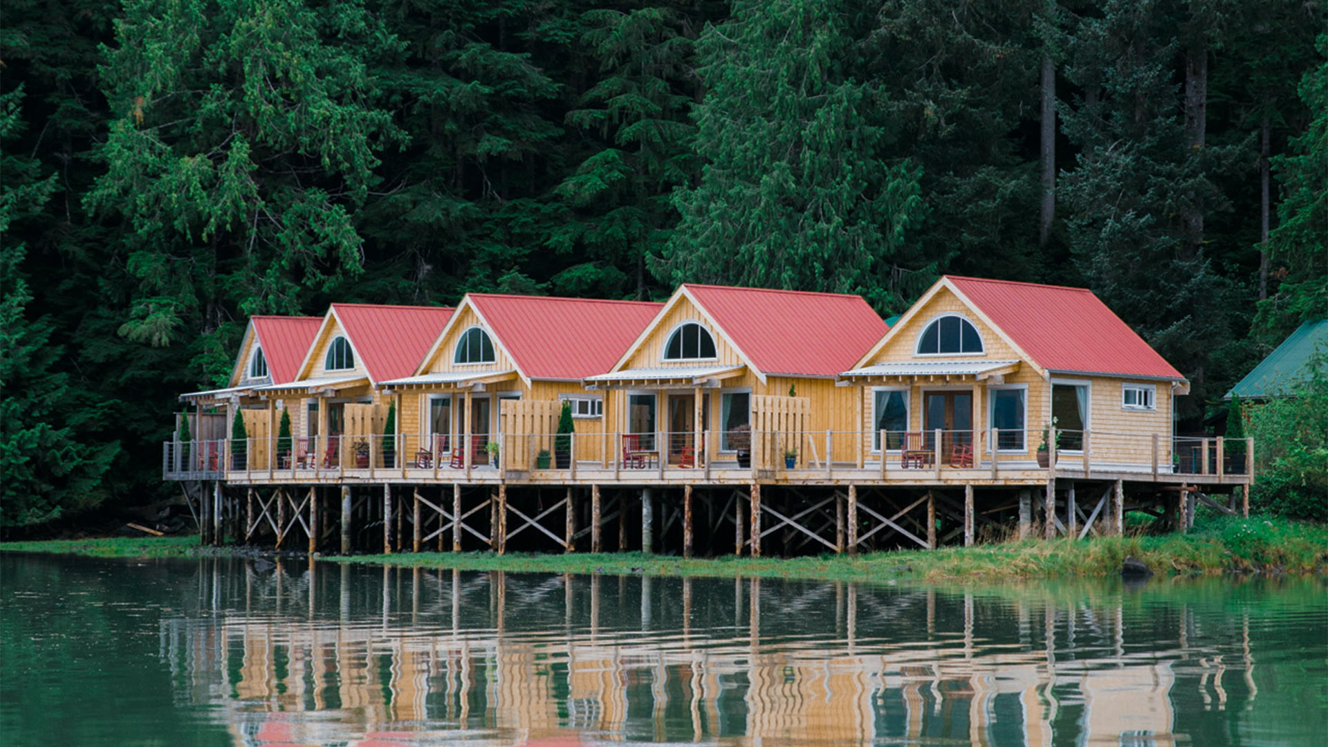 The act of creating connections in the wilderness of Western Canada is all-consuming, particularly with the absence of phone signal and outside interference. The unforgiving nature of the great outdoors gives a new, invigorating energy to the body. The thwack of chinook against galoshes when fishing in a glacial lake perhaps, or being showered in the sea spray of a breaching humpback whale. Both of these scenarios are a possibility at Nimmo Bay Wilderness Resort, a collection of forest cabins that cling to the shores of the mercurial Mackenzie Sound – a body of water that’s as reflective and motionless as a mirror.