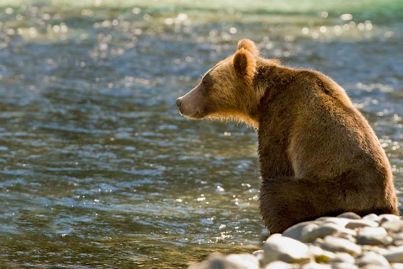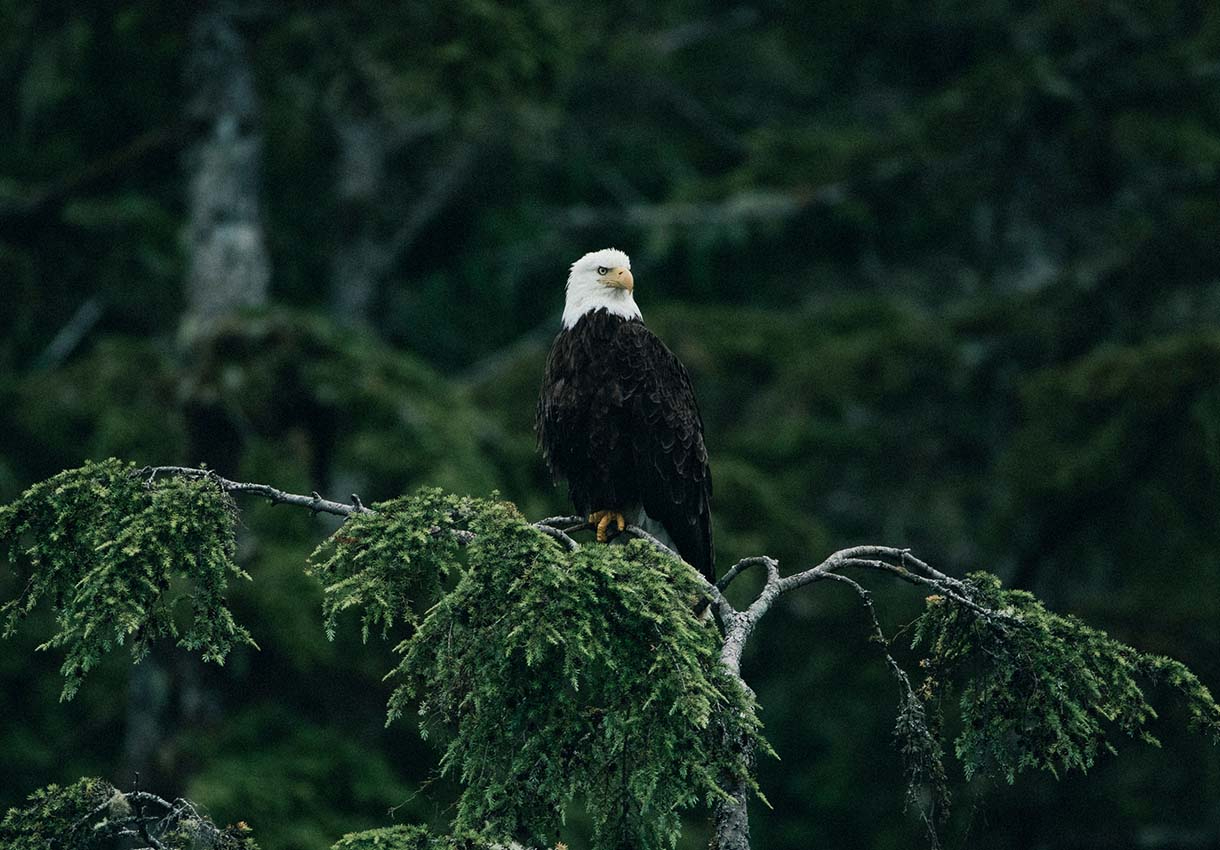This is nature’s realm. A gateway to another world – one where steller sea lions cavort in the shallows, writhing fish clamped between their jaws, and majestic pods of orcas breach the blues. Overhead bald eagles soar, their two-metre wingspans outstretched, staking their claim as the undisputed rulers of the skies. Then there are the bears. In the autumn months, spawning salmon tempt grizzlies from their forest cathedrals to feast at the water’s bubbling edge.